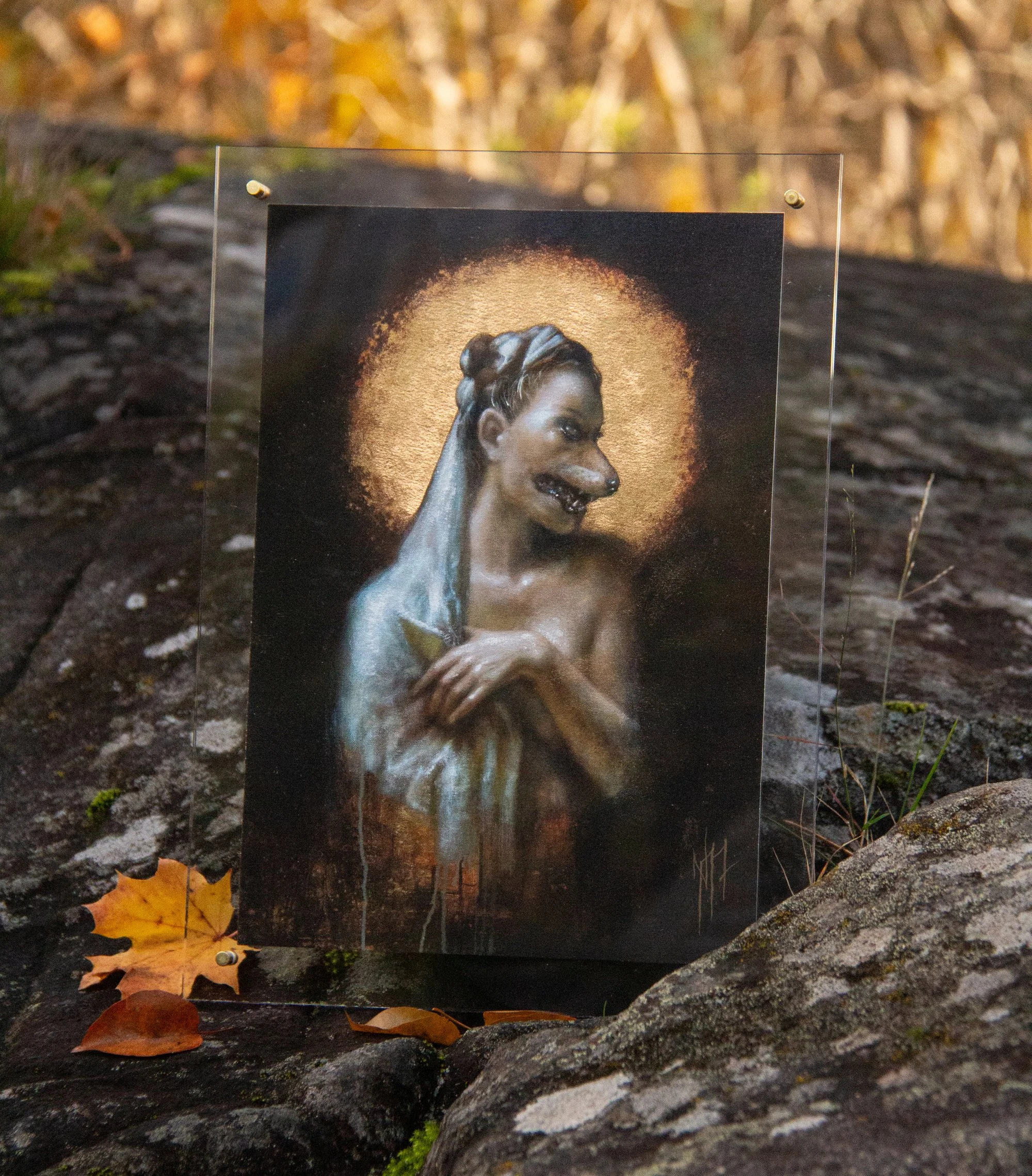 Hand embellished with highly pigmented acrylic and “pale gold” bronze paint. Giclée on matt Hahnemühle fine art paper (museum requirements ISO 9706), 20x29 cm